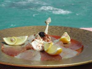 Meddlies of roasted organic Anguillian vegetables, served chilled with three crumbles of nuts, goat cheese and spices. 15.75