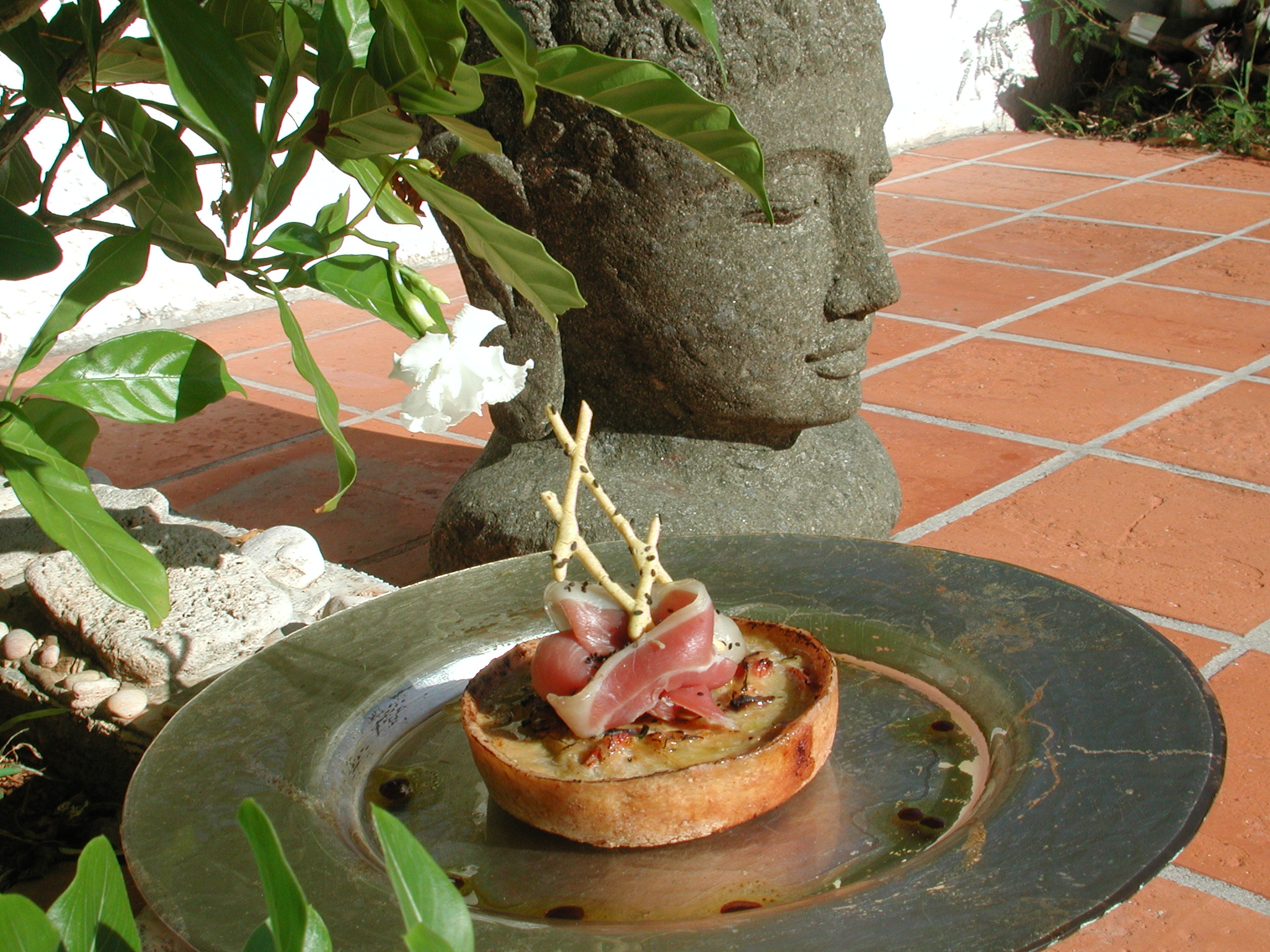 TARTELETTE D�OIGNON AU THON FUME, SALADE DE BONITE SECHEE