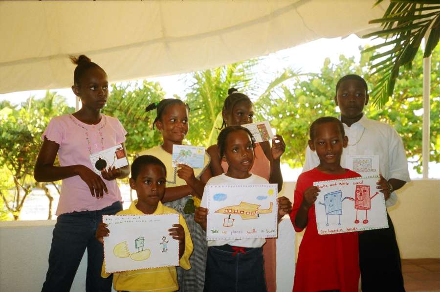 "Teacher Art has been supportive of my idea and we hope somehow to implement this idea. If this information is on a website the drop off point could be at the West End Primary school with Teacher Art distributing the books equitably around the island or if the hotels become involved perhaps a collection at their hotel.....if it really takes off...A box at the airport!"