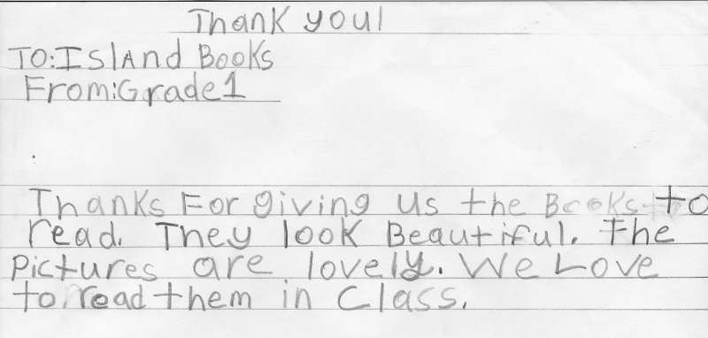 Island Books sponsored a poster and postcard contest to help promote the project. Students from all primary schools entered. All entries showed creativity and artistic talent. The winners were announced in March. Prizes were awarded in both categories. Posters from K-3 and postcards from Grade 3-6. The first prize winners in each category received $50.00 gift certificates from The Tackle Box.The Tackle Box generously matched these gifts which were given to the winner's school. First prize winners also received a book "The People Could Fly" by Virginia Hamilton. Other finalists received ice cream coupons from Ashley and Sons. Ashley and Sons generously donated ice cream cones for the honorable mentions. The winning choices will be printed and used to promote the project. Poster WinnersFirst prize: Luciano Smith Morris VanterPool School